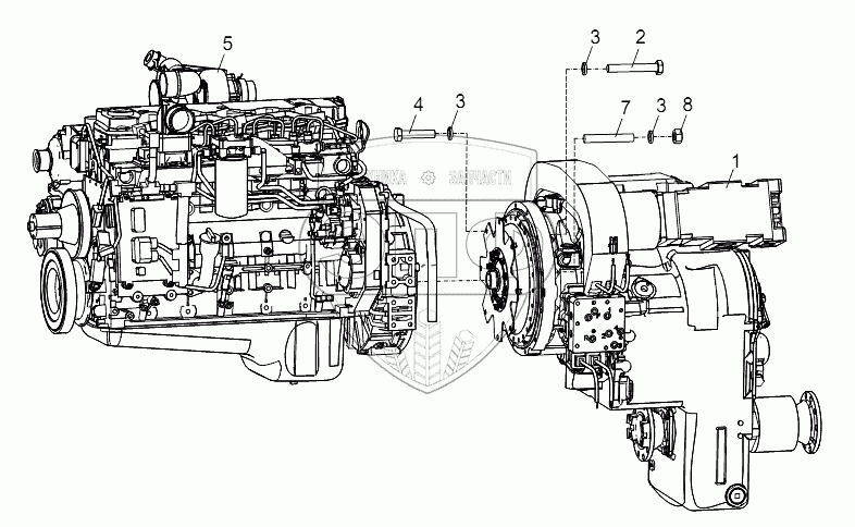 Каталог запасных частей к технике: Zoomlion RT-55. TRANSMISSION AND ENGINE PRE-ASSEMBLY D00757911700200000Y