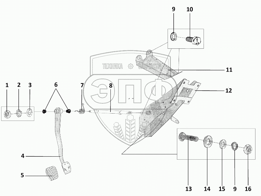 Каталог запасных частей к технике: ЗЗГТ ГАЗ-34039 (Ирбис). Кронштейн педали, педаль