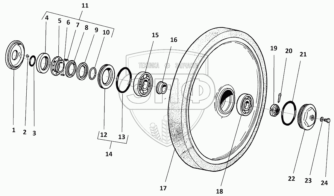 | 14 | 47-3205040 | Шайба уплотнительная ступицы катка ленивца в сборе | Нет на складе | |