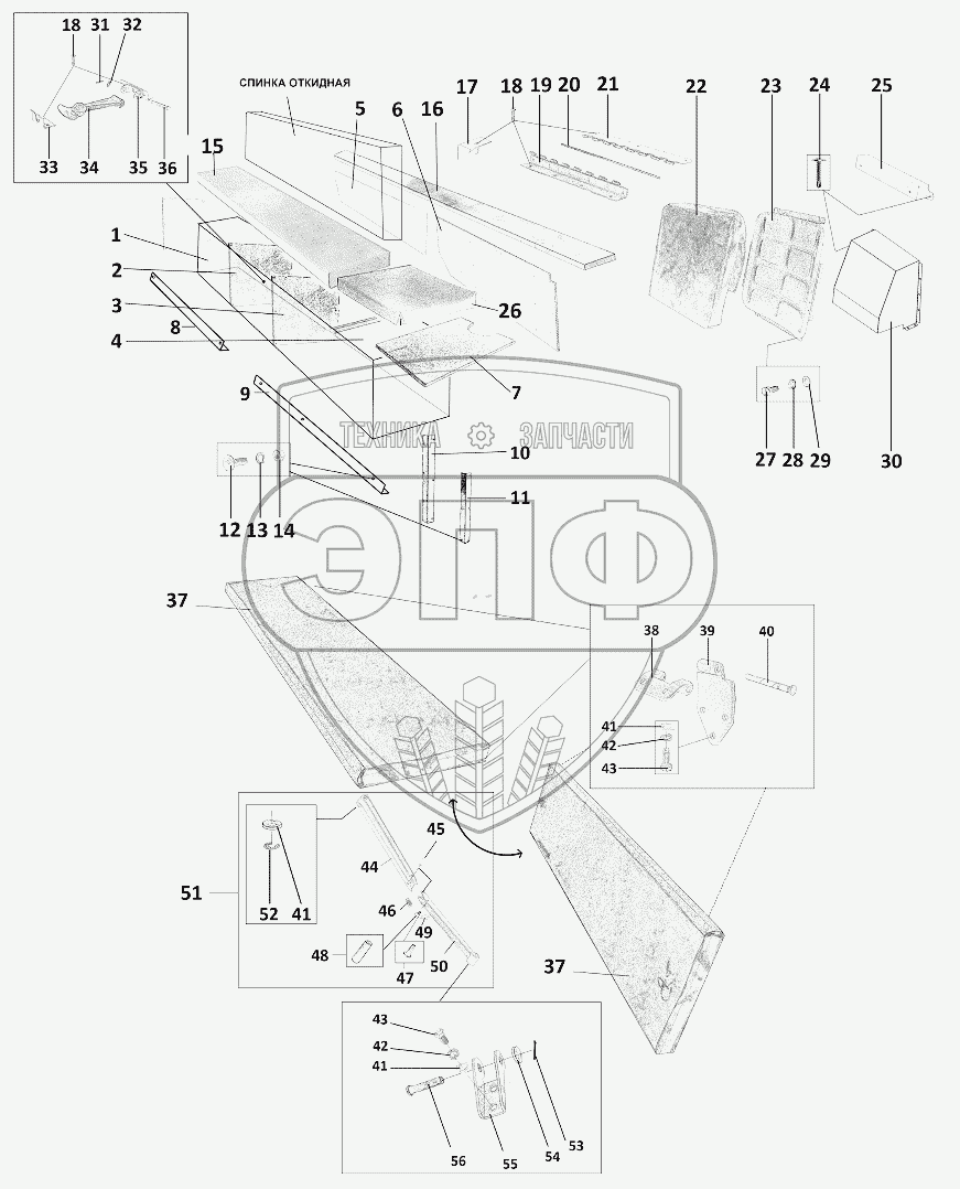 Каталог запасных частей к технике: ЗЗГТ ГАЗ-34039 (Ирбис). Сиденья боковые, рундуки