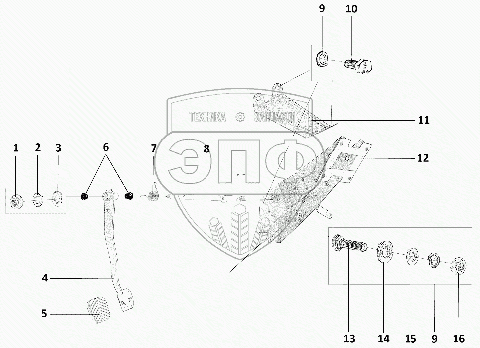 Каталог запасных частей к технике: ЗЗГТ ГАЗ-3409 (Бобр). Кронштейн педали, педаль