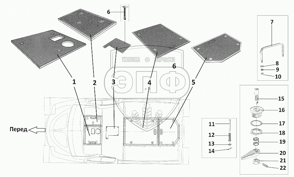 Каталог запасных частей к технике: ЗЗГТ ГАЗ-3409 (Бобр). Люки пола