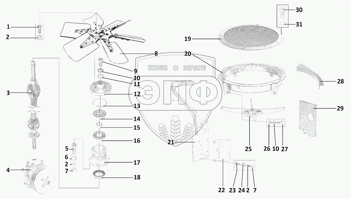 Каталог запасных частей к технике: ЗЗГТ ГАЗ-3409 (Бобр). Привод вентилятора, кожух, кронштейн