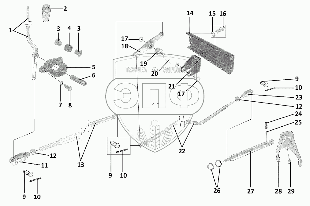 Каталог запасных частей к технике: ЗЗГТ ГАЗ-3409 (Бобр). Управление дополнительной передачей