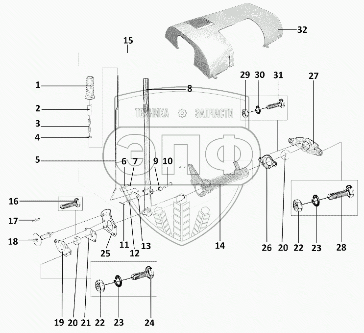 | 17 | 15-142753-А | Упор рычага управления правый | Нет на складе | |
