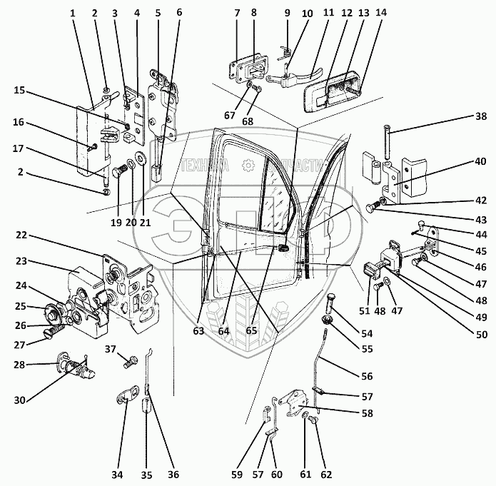 Каталог запасных частей к технике: ЗЗГТ ГАЗ-3409 (Бобр). Замки, петли