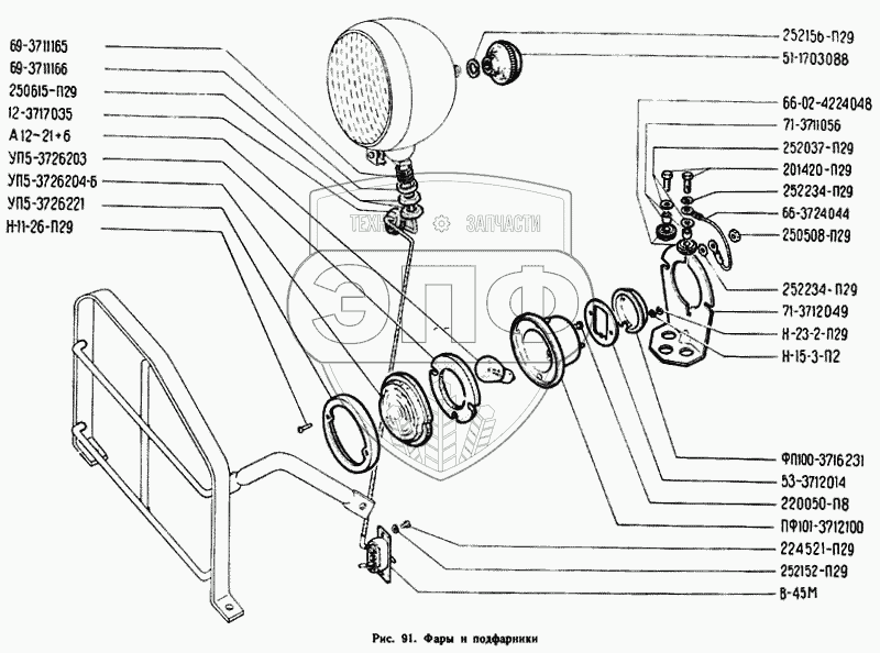 Каталог запасных частей к технике: ЗЗГТ ГАЗ-71. Фары и подфарники