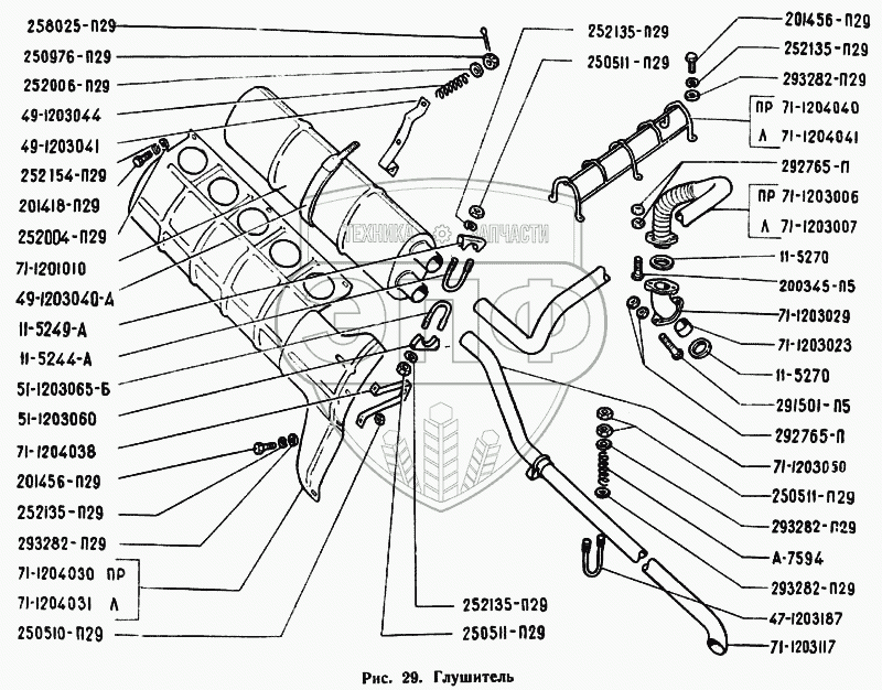 Каталог запасных частей к технике: ЗЗГТ ГАЗ-71. Глушитель