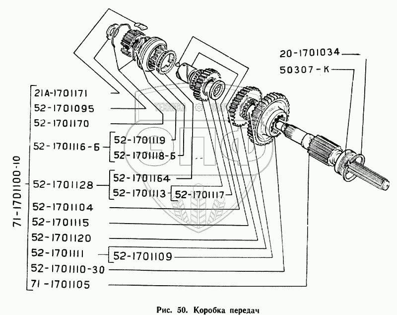 Каталог запасных частей к технике: ЗЗГТ ГАЗ-71. Коробка передач