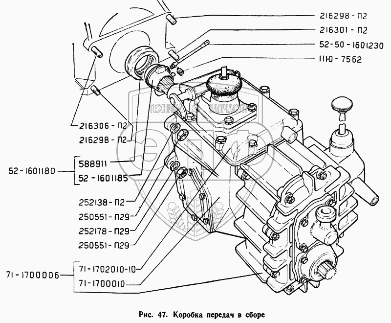 Каталог запасных частей к технике: ЗЗГТ ГАЗ-71. Коробка передач в сборе