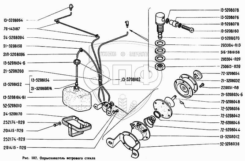 Каталог запасных частей к технике: ЗЗГТ ГАЗ-71. Опрыскиватель ветрового стекла