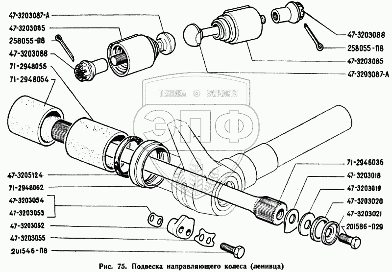 Каталог запасных частей к технике: ЗЗГТ ГАЗ-71. Подвеска направляющего колеса (ленивца)