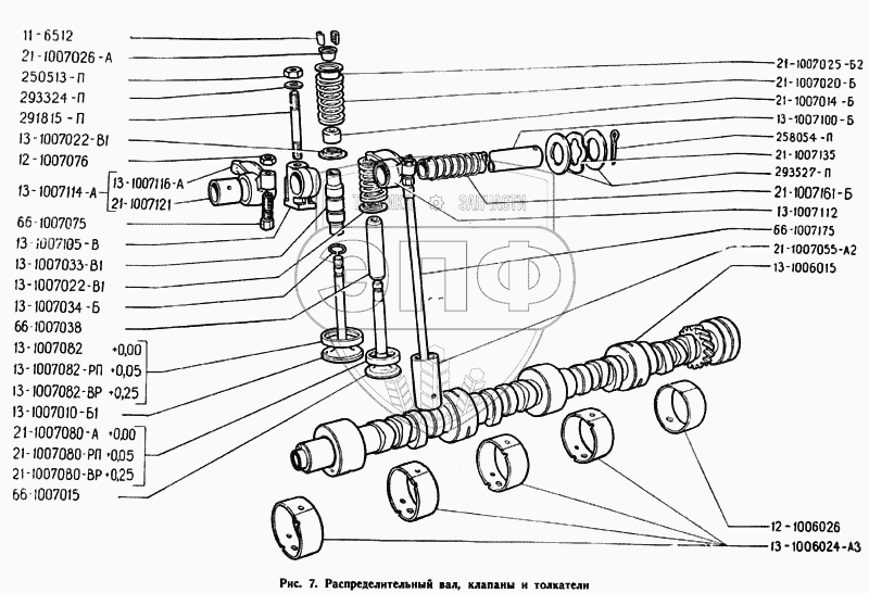 Каталог запасных частей к технике: ЗЗГТ ГАЗ-71. Распределительный вал. Клапаны и толкатели
