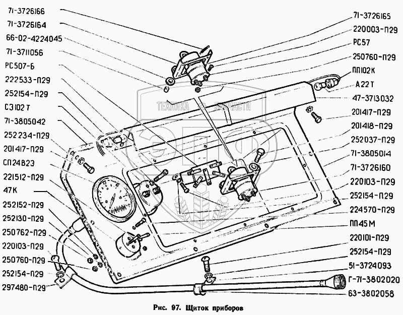 Каталог запасных частей к технике: ЗЗГТ ГАЗ-71. Щиток приборов