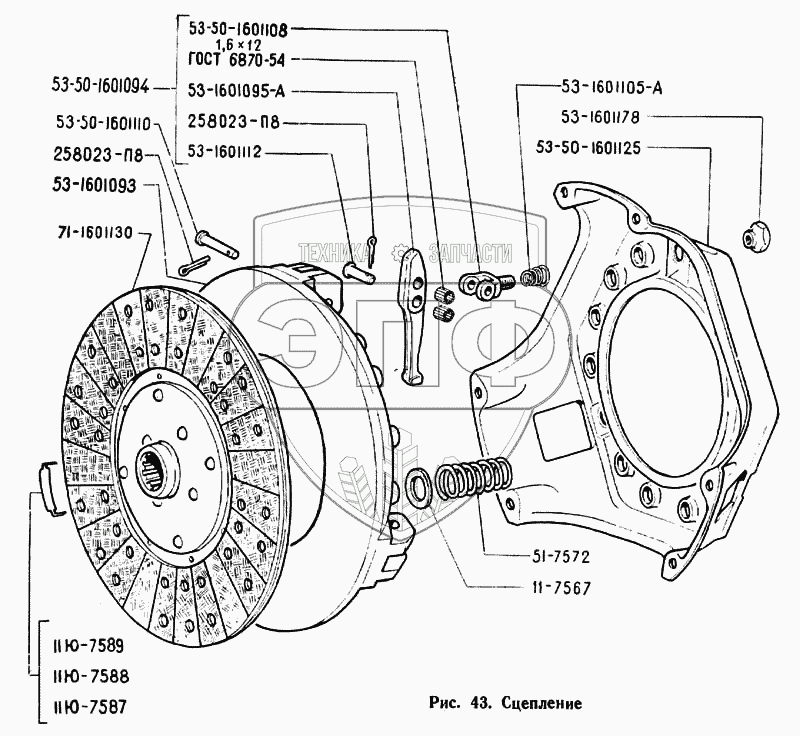 Каталог запасных частей к технике: ЗЗГТ ГАЗ-71. Сцепление