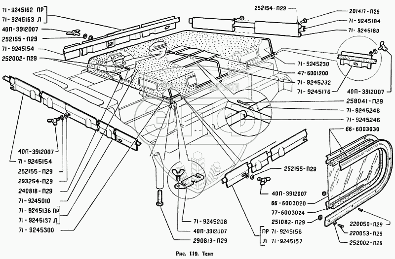 Каталог запасных частей к технике: ЗЗГТ ГАЗ-71. Тент