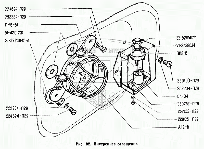Каталог запасных частей к технике: ЗЗГТ ГАЗ-71. Внутреннее освещение